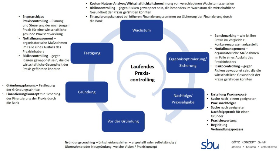 im Blick hat, birgt jede Phase im Lebenszyklus einer Praxis eigene Herausforderungen, die wir gern mit Ihnen gemeinsam meistern möchten: